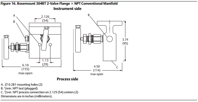 Engineered for 2-, 3- and 5-valve configurations, the Rosemount 304 Conventional Manifold attaches to a transmitter with a traditional or coplanar flange. This manifold is available in traditional and wafer styles and is factory-assembled to transmitters, leak-tested and calibrated for quick installation. Designed for multivariable, static and differential pressure transmitters, this manifold allows instrument isolation, controlled venting and protection from leaking to ensure measurement integrity.